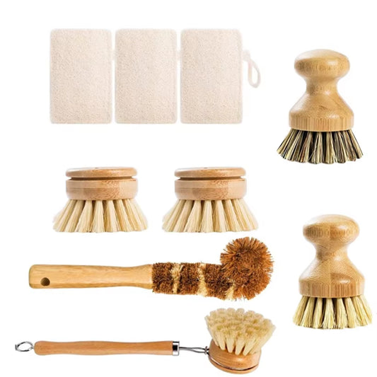 Natural Bamboo Dish Scrub Brush Set Eco Friendly Dish Brush with Bamboo Handle Dish Scrubbers Kit...
