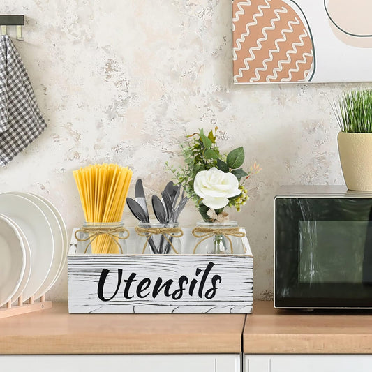 Kitchen Utensil Holder for Countertop Large Utensils Caddy for Kitchen Farmhouse Flatware Organiz...