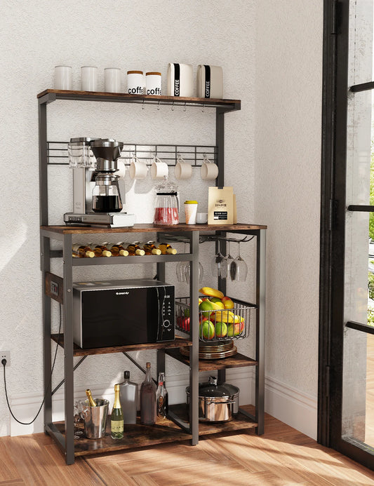 Pantry Cart Microwave Stand with Storage, 60"Coffee Bar Station Kitchen Island Baker Rack f...
